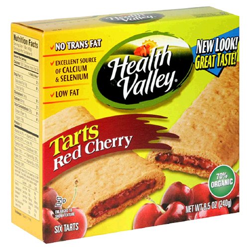 No trans fat; Excellent source of calcium; Low fat. Great taste. 70% Organic. Health Valley Tarts are a delicious and nutritious treat that you can enjoy any time throughout the day. Made with all natural organic grains, these bars are and excellent source of calcium and selenium and a good source of six essential B-Vitamins. And unlike many other bars, they contains no trans fat and no artificial colors, flavors or preservatives. But most important, you never have to sacrifice great taste for good nutrition. Health Valley Foods--assuring a healthy life for you and your family. Made with no genetically engineered ingredients. Certified Organic by Quality Assurance International (QAI). Exchanges: 1 starch, 1 fruit.